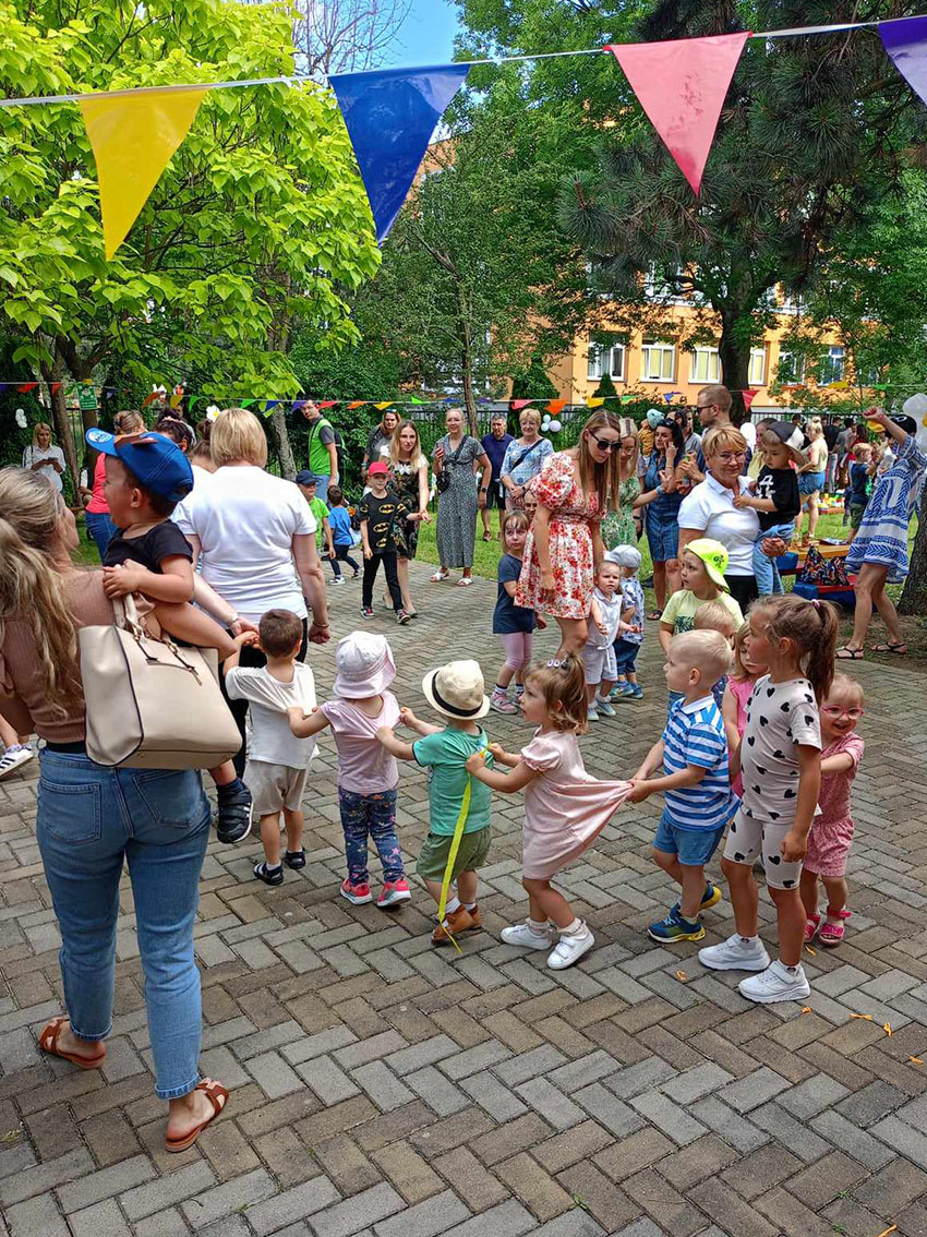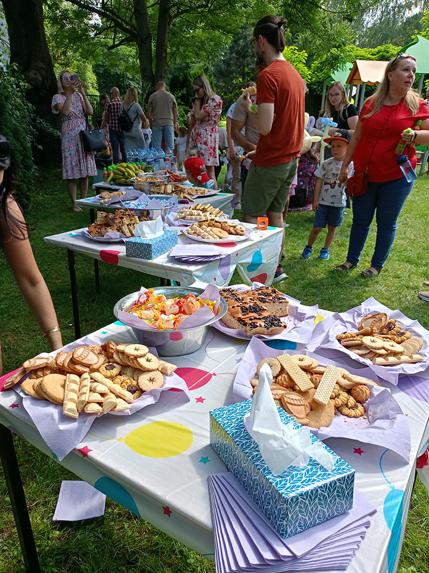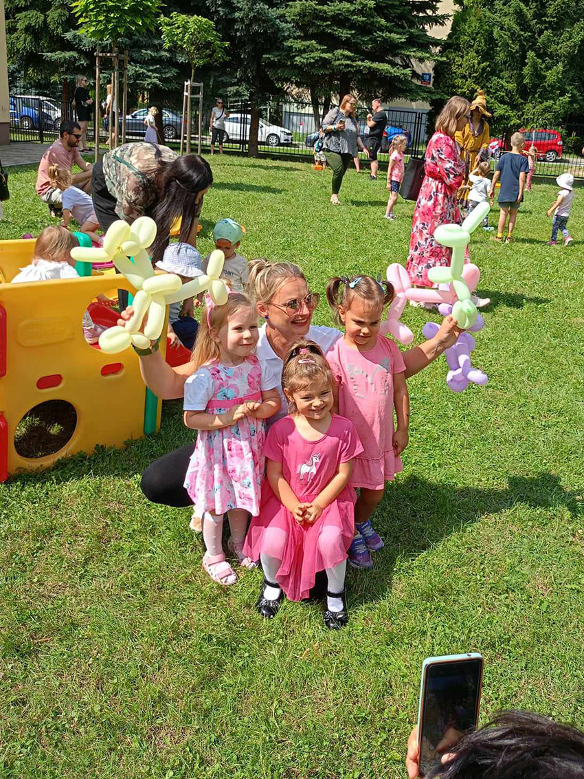 Dzieci wraz ze swoimi rodzicami mogli wspólnie spędzić czas na świeżym powietrzu, w otoczeniu pięknie przystrojonego ogrodu. Kolorowe balony, serpentyny, chorągiewki czy girlandy sprzyjały tworzeniu wesołej i beztroskiej atmosfery. Jednak największą atrakcją okazały się wspólne tańce przy akompaniamencie muzyki na żywo.