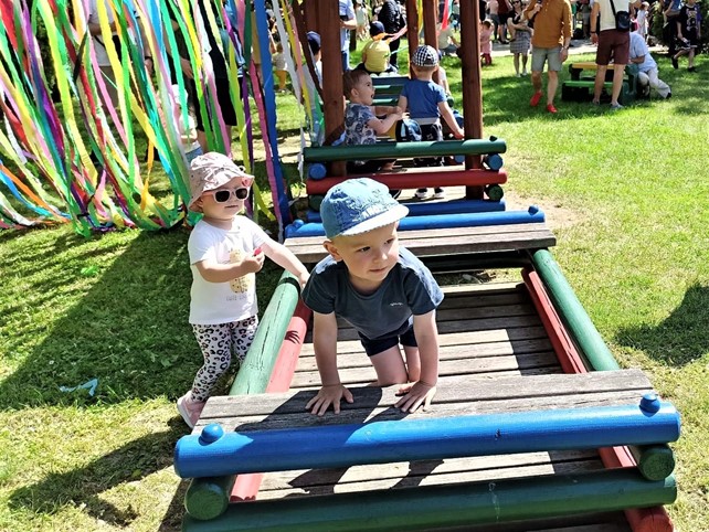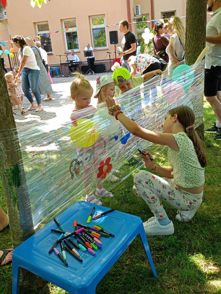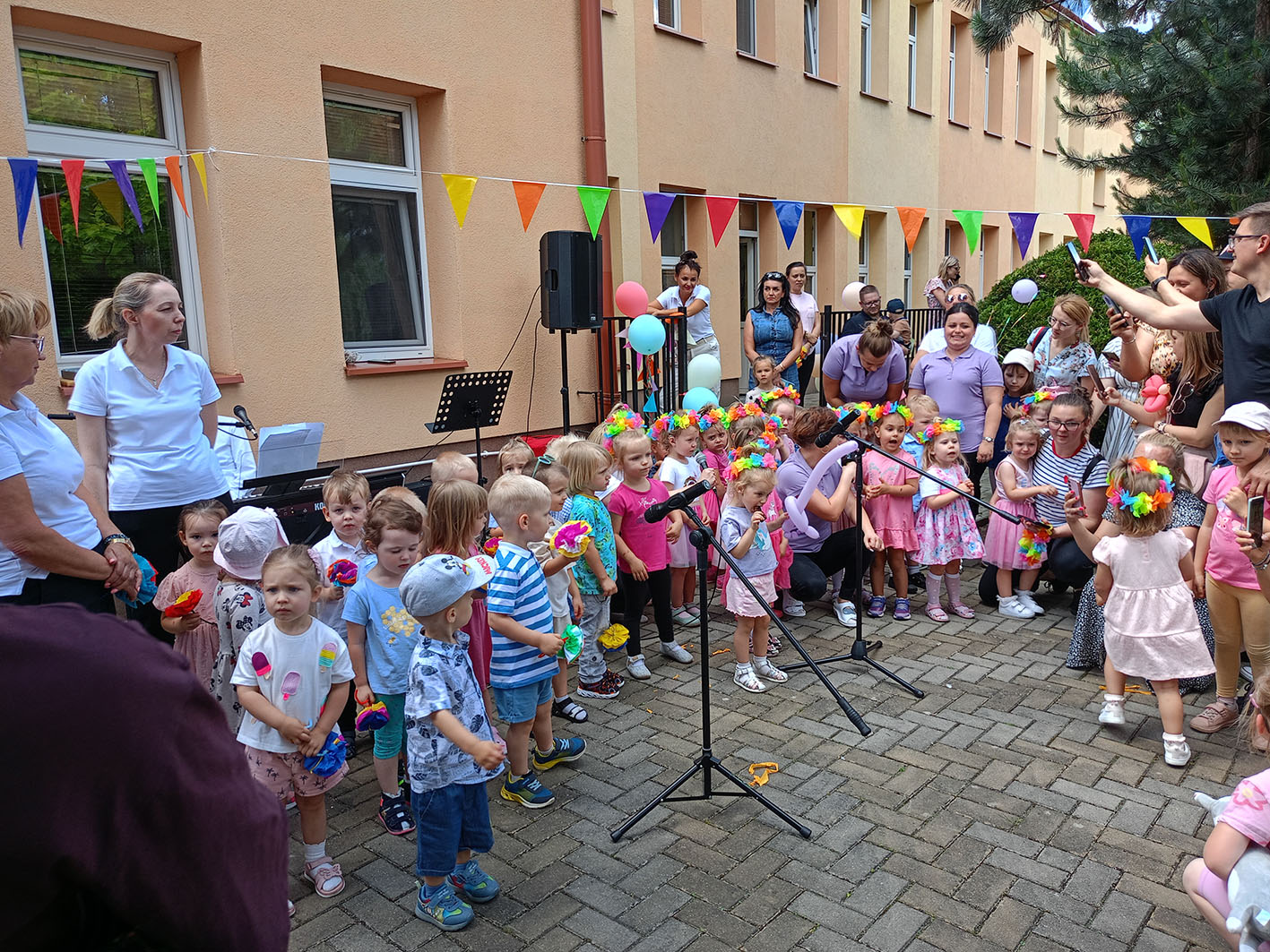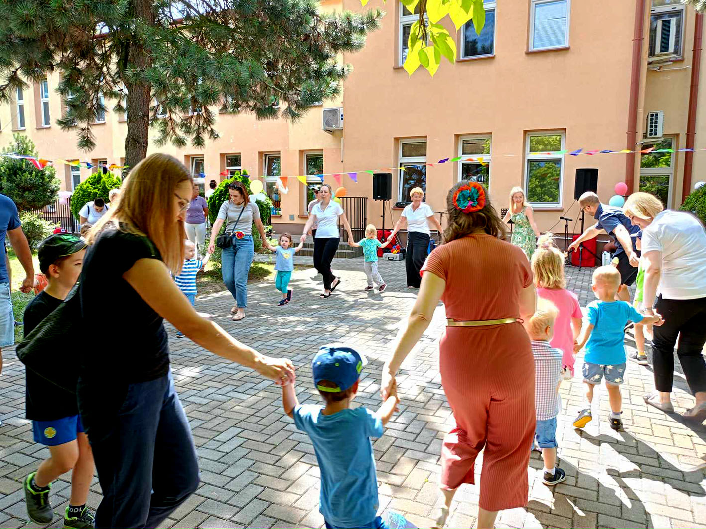 Dzieci wraz ze swoimi rodzicami mogli wspólnie spędzić czas na świeżym powietrzu, w otoczeniu pięknie przystrojonego ogrodu. Kolorowe balony, serpentyny, chorągiewki czy girlandy sprzyjały tworzeniu wesołej i beztroskiej atmosfery. Jednak największą atrakcją okazały się wspólne tańce przy akompaniamencie muzyki na żywo.