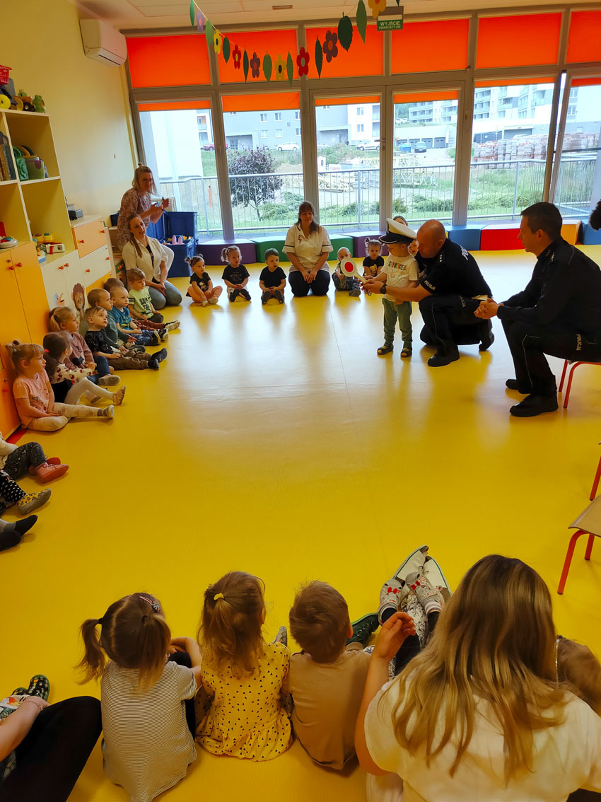 W spotkaniu uczestniczyli kom. Paweł Grześ z Wydziału Ruchu Drogowego KWP w Rzeszowie, mł.asp. Tomasz Wojtanowski oraz asp. Jerzy Ossoliński, którzy opowiedzieli o tym jak bezpiecznie poruszać się po drodze, przedstawili dzieciom podstawowe zasady bezpieczeństwa podczas wakacji, w domu, w trakcie zabaw, zaprezentowali niezbędne atrybuty policjanta oraz opowiedzieli o wielu innych ciekawostkach, dotyczących pracy w tym zawodzie.