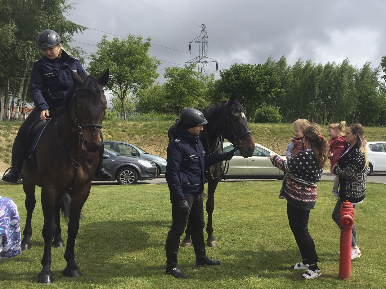 Tajniki pracy w policyjnym zespole konnym przybliżyli dzieciom funkcjonariusze z Wydziału Prewencji KWP - sierż. szt. Edyta Mikołajewska i sierż. Szt. Marek Kopczyk. Konie pięknie się zaprezentowały. Odważne dzieci mogły je nawet pogłaskać.